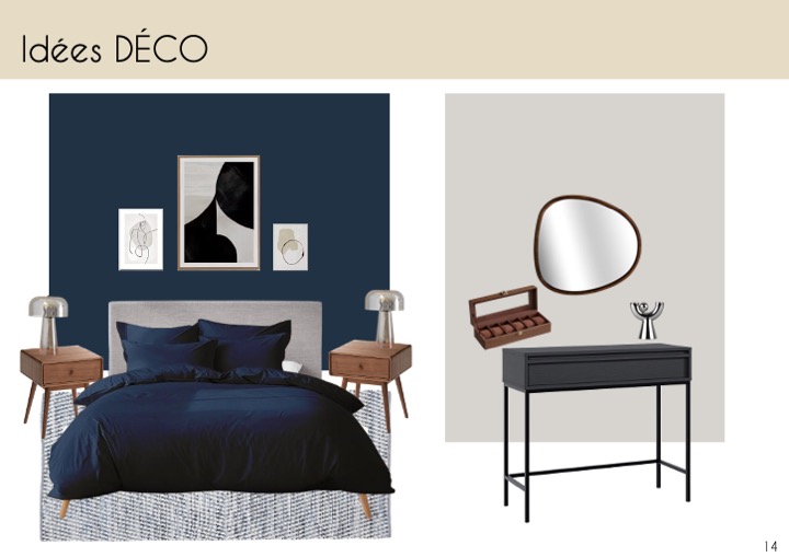 - Créer une ambiance de caractère dans la chambre parentale en y intégrant de nouveaux meubles et de nouveaux objet de décoration.