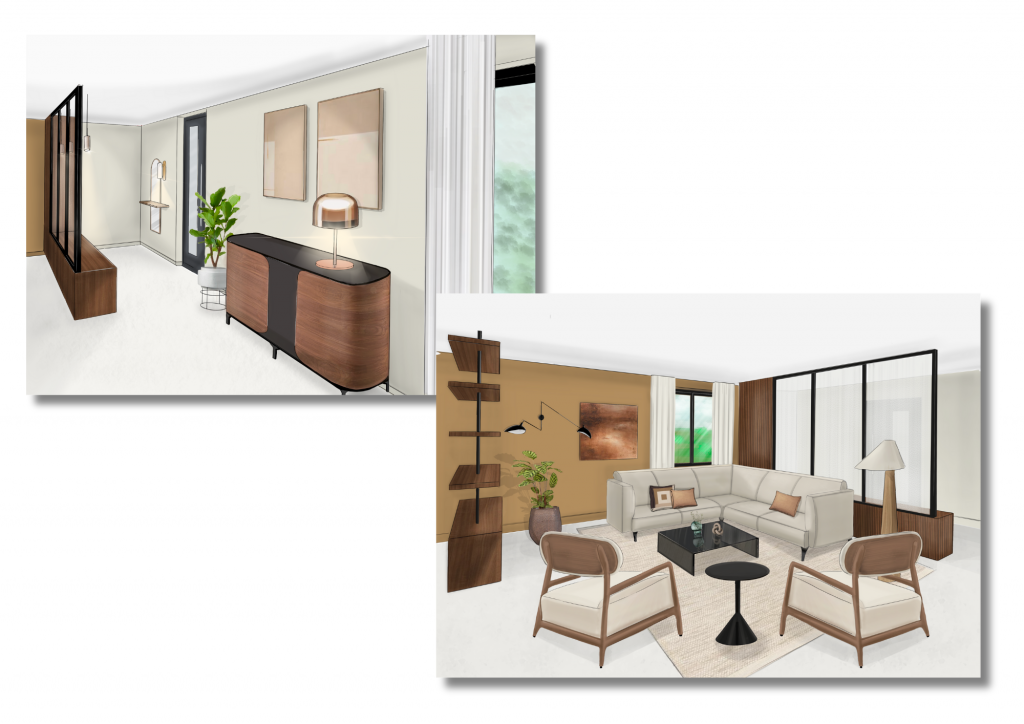Le croquis permet de vous projeter plus facilement dans votre future intérieur et de visualiser concrètement les idées que je vous propose.